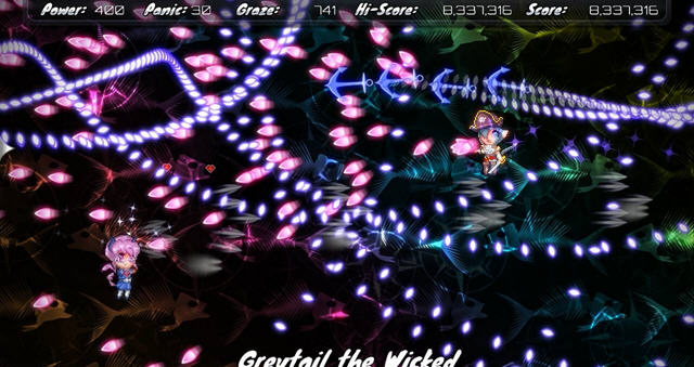 雪中物语的弹幕与东方系列非常的相似,华丽而又慢速,但是它的画面却与一直以精美而著称的东方系列完全不相称,整个游戏的画面都是略带恶搞的手绘风格。 雪中物语下载