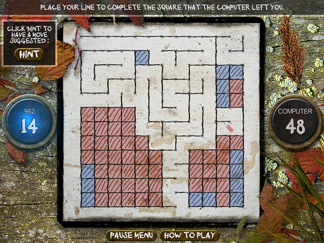 nbsp;格线布局GridLines是个很考验智慧的小游戏。 游戏模式简单,对战双方交替用自己的笔在棋盘上画线,当围成一个正方形时就有资格再画一笔,若未围成正方形,则由对手画线。当双方行动完毕时棋盘被画满,则游戏结束,胜负由各人完成的正方形数量来决定。可 格线布局下载