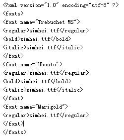 把系统的黑体字体文件simhei.ttf 复制到 游戏的 \Data\Fonts 目录下, 然后把 fonts.xml改成下面这样就可以了: