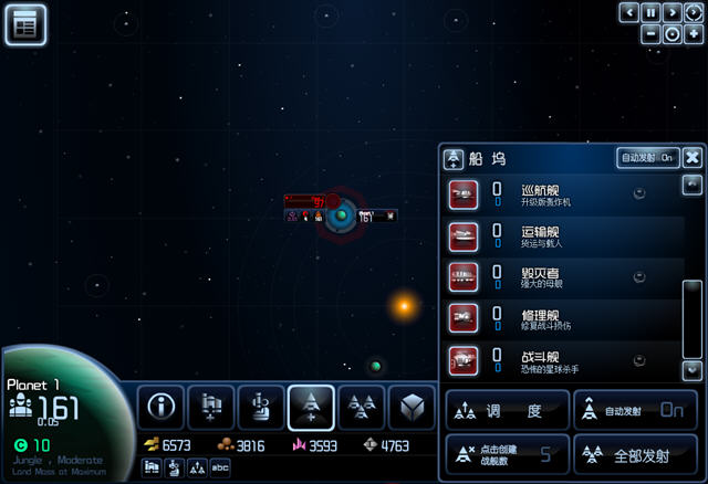 游戏提供了自动建造的选项,后期不推荐使用,特别是你想要建造舰队时,经常会因为开了自动建造资源被消耗,导致无法创建高级的强力舰队。