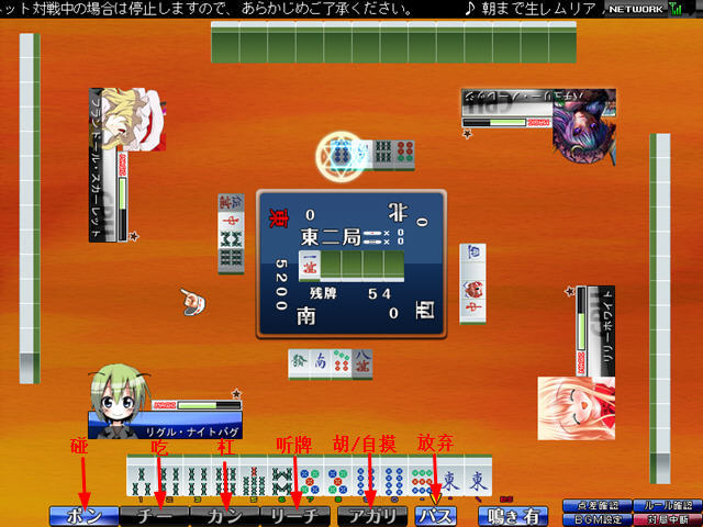 游戏的界面为日文,玩家可以参照下图的对应说明来理解常用的几个麻将术语。