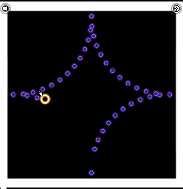 游戏提供的是一个全黑的场景,场景中摆放着紫色的圆环,你的任务就是拖拽杏色圆环吃掉摆放着的圆环,就能过关。