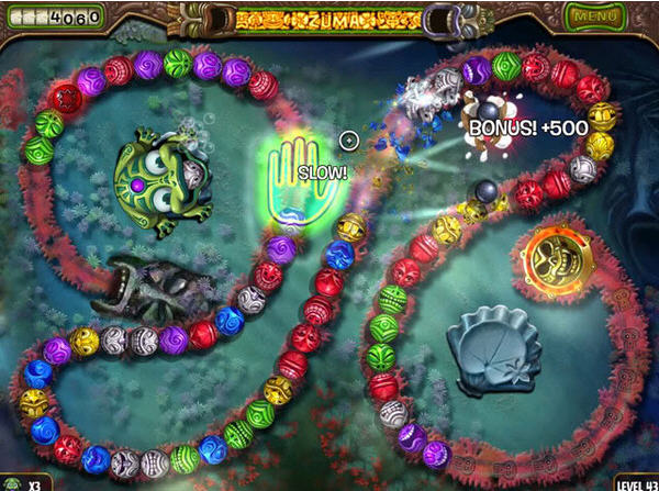 爆炸石球 止慢掌 速瞄 倒退等道具功能仍然与祖玛第一版本一样。