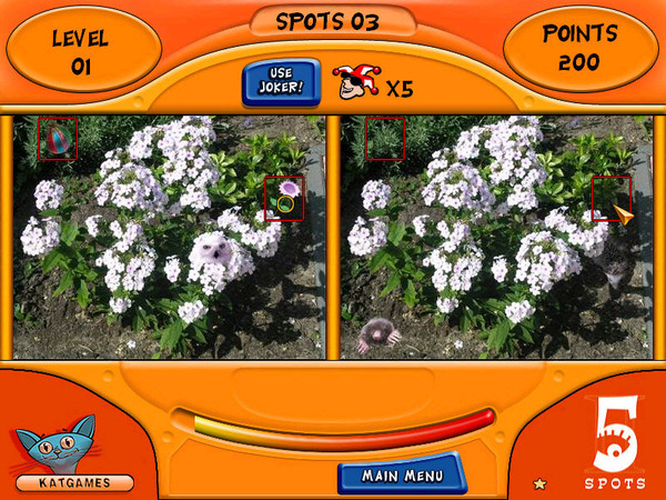 1、在找到两幅图的差异时,用鼠标点击差异的地方(左、右图均可),如果对了,将用绿色的“别扭框”圈上,如果是用电脑的帮助找到的,将用黄色的“别扭框”,如果时间没有了或中途退出,余下的将用红色的“别扭框”。