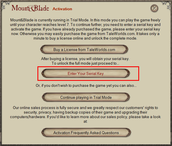 当提示玩家激活的时候,选择第二个Enter Your Serial Key来输入激活码。