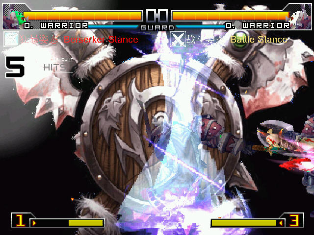 这款mugen最大的亮点无疑就是人类圣骑与兽人战士这两个犀利角色的加入了。人类圣骑可以有两种光环,而兽人战士则可以切换3种姿态。