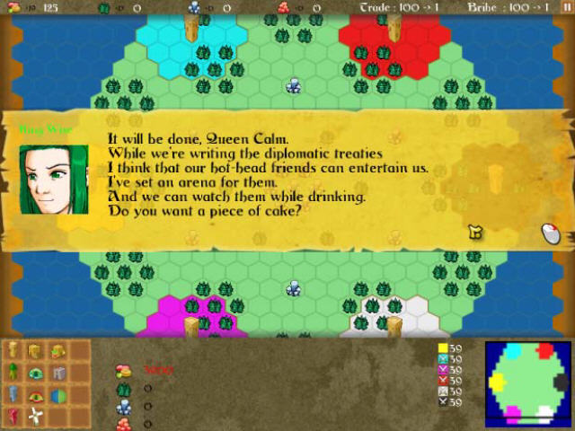 这款游戏其实跟三国志系列如出一辙,最多4个国王,然后不断地发展扩张自己的领地,最后建立起只有自己王国的世界。