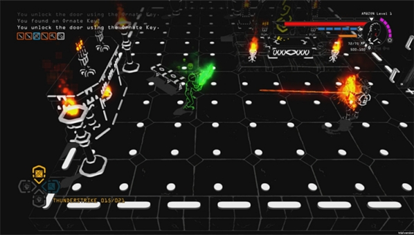 地下城的地图会在每次玩游戏时会自动随机生成,怪物、宝箱和武器的附魔地点都会有所不同。宝箱里面,可能会拿到不常见的恢复药剂,也有可能是字母表中的某个字母。通过收集、组合字母,可以进行武器制作,这不得不说是一个很有趣的点子。并且,26层楼中并非每层都散落着一个字母,有些楼层会有3个字母出现。当然,收集字母并不是见到boss的必要条件。