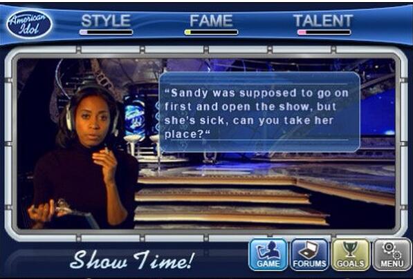 American Idol: The Game是根据美国著名的电视选秀节目American Idol改编而来(类似于超女),玩家要扮演一名新秀参与到节目当中进行比赛,并最终获取American Idol的殊荣。游戏的容量不小,其中真人语音、真人过场、评委点评以及歌曲占了很大一部分,所以画面给人的感觉非常之华丽,但美国偶像免费版的内容其实很简单,玩家需要用重力感应操作一颗五角星,吃掉所有屏幕上所有滚动的音符,或者在适当的时机点击屏幕上的五角星即可,除了歌曲比赛以外玩家还要处理人际关系,为自己争得名声等,都是通过对话选择形式进行,英语不好的朋友可能会感到有些吃力,不过喜欢音乐游戏或者喜欢此节目的朋友还是不要错过了。