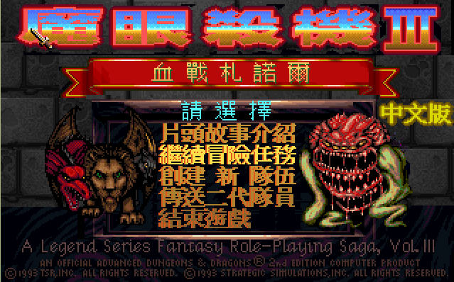 魔眼杀机系列第三部, 也是这系列的完结篇. 这次主角接受了不速之客的邀请, 代为寻回落在Lich手中的古代神物, 一转眼就从乱葬岗中开始冒险旅程... 由于第二代中文化后大受欢迎, 软体世界仍旧将三代中文化并制作了立体的特殊封面. 三代仍旧是采直角3D视觉呈现, 并以团队即时方式战斗. 虽然难度已经大幅度降低, 但剧情和游戏水准也跟着滑落. 毕竟前两代是由知名的westwood小组制作, 跳槽后只得由SSI自行创作第三代了.