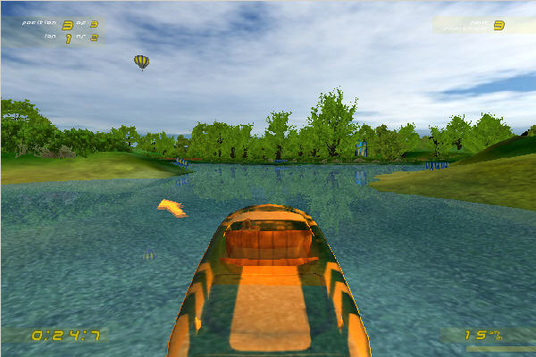 “疯狂赛艇”游戏将带给你美丽的湖泊风景和刺激的竞速快感。游戏中你可以操纵不同的赛艇进行各种模式的比赛,驾驶赛艇飞速滑过水面一定会带给你痛快淋漓的感觉的。喜爱速度游戏的朋友们如果玩腻了赛车类游戏,“疯狂赛艇”将是您最好的选择。水面上的速度感决对不会亚于地面上的。3D游戏场景非常美丽,很难相信一款仅仅10MB的游戏可以达到如此的画面效果,玻璃般的湖面映衬这两旁的绿树,蓝天和白云投影水中,赛艇飞速驶过,溅起了白色的水珠都是栩栩如生。另外,传统赛车游戏的过弯方法对于赛艇不再适用。水面上的转向能力可是要比地面上要差很多,所以就要计算好提前量,再寻找合适的角度入弯。