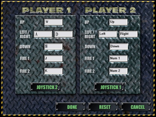 玩法:player 1: W,A,S,D为上下左右,J,K为发射键和炸弹player 2:键盘方向键上下左右,数字键1,2为发射键和炸弹进入游戏后player 1按发射键( J 键)开始选战机,有三位主角可以选择,这三位主角在游戏中驾驶不同的战机,按W,A,S,D选好后按发射键即开始游戏!player 2按发射键( 1 键)开始选战机