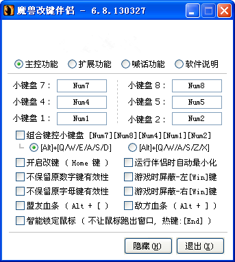 改键不影响聊天,并且设置非常简单,同时支持魔兽争霸III 1.20abcde/1.23a/1.24be/1.25a/1.26a 多个版本。