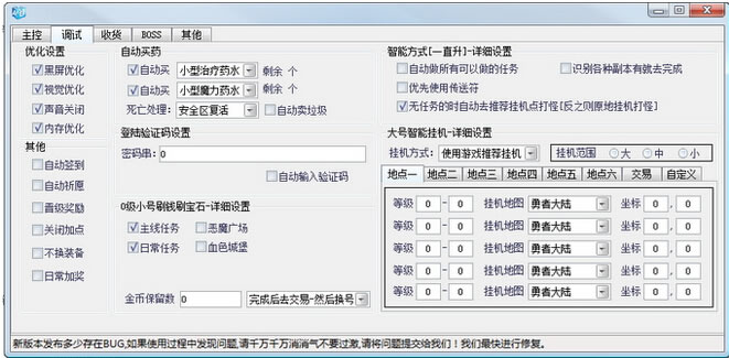自动副本;自动日常;刷完日常自动更换账号;自动去指定的地点交易;全新黑屏优化;自动判断当前任务进度。大天使之剑莫愁辅助 更新日志10.30号更新:1、添加37VIP7,VIP8活动领取2、添加QQ空间支持3、修复BOSS问题4、修复其它