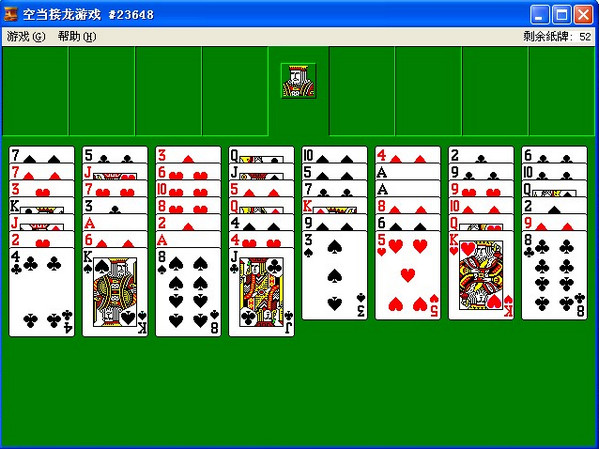 按F2,就开始了一局游戏。我们先来介绍游戏的玩法:左上有四个空位,每个可以临时存放一张纸牌,此游戏中它们被称为中转单元(A)。右上方的四个空位是回收单元(B),A可以随时移到任何一个空位中,其它牌必须按照从小到大的顺序移到相同花色的单元中。所有纸牌都移入回收单元后,本局结束,你就胜利了。注意,与中转单元不同,移入回收单元中的纸牌是不能再拿出来的。
