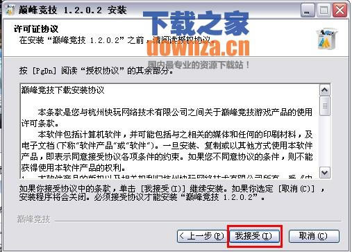 步骤3:阅读《巅峰竞技》许可协证协议,然后点击【我接受】,进行下一步操作(如下图);