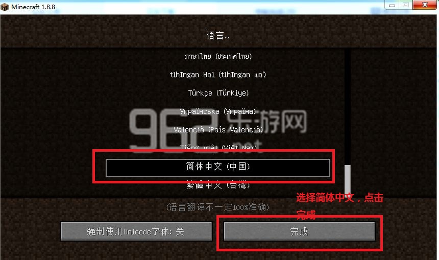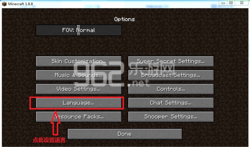 《我的世界1.8.8》切换成中文游戏界面方法。