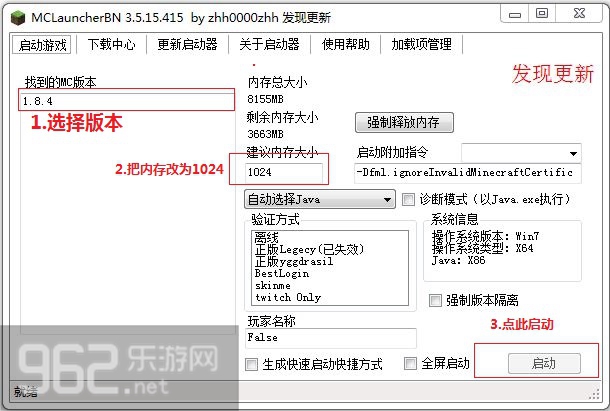 这次我的世界1.8.4启动器采用的是MCLauncherBN版的,玩家进游戏前需要进行简单的设置,具体操作方法如下: