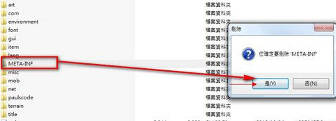 4、用压缩软件打开后删除里面的META-INF文件夹。