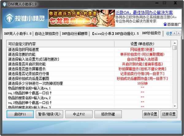 dnf商人小助手绿色版是一款小巧实用的折优惠DNF游戏工具。dnf商人小助手绿色版功能强大,能够支持游戏里的商人优化自动上架,新增自动上架装备功能。