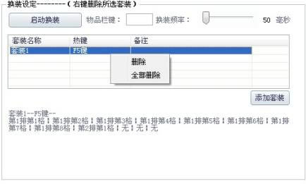 九个格子的换装,换装热键是L或F5。 当然你可以右键删除此套装,如图: