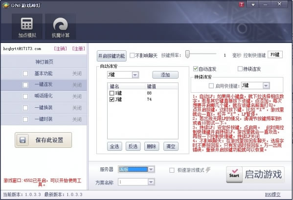 17173-dnf神灯工具的功能主要有:基本功能、一键连发、喊话疲劳、一键换装。